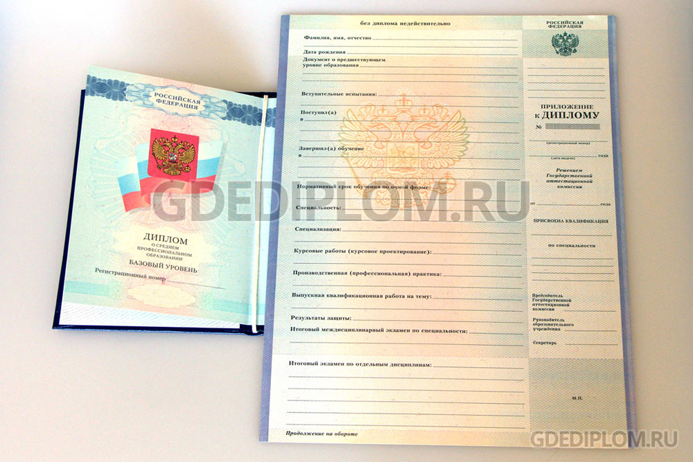 Вы хотите иметь документ, подтверждающий Ваш профессионализм? У нас быстро и за доступную стоимость Вы сможете купить диплом по той специальности, практические навыки которой имеете. Выберите для себя любое направление и учебное заведение (техникум, колледж), а мы быстро, качественно и правильно изготовим для Вас диплом специалиста среднего звена подходящего периода. В комплект каждого документа входит сам бланк СПО, приложение к нему, а также твёрдая обложка. Ознакомьтесь с описанием, фото, стоимостью корочек и вариантами, как купить ниже .
